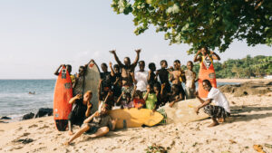 Youth members of the Robertsport Surf Club. Photo: Copyright © HAND STUDIO, Frechou, Bourbon, 2024.