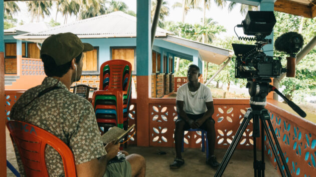 Filmmaker Arthur x with Eli Brown and of the Robertsport Surf Club. Photo: Copyright © HAND STUDIO, Frechou, Bourbon, 2024.